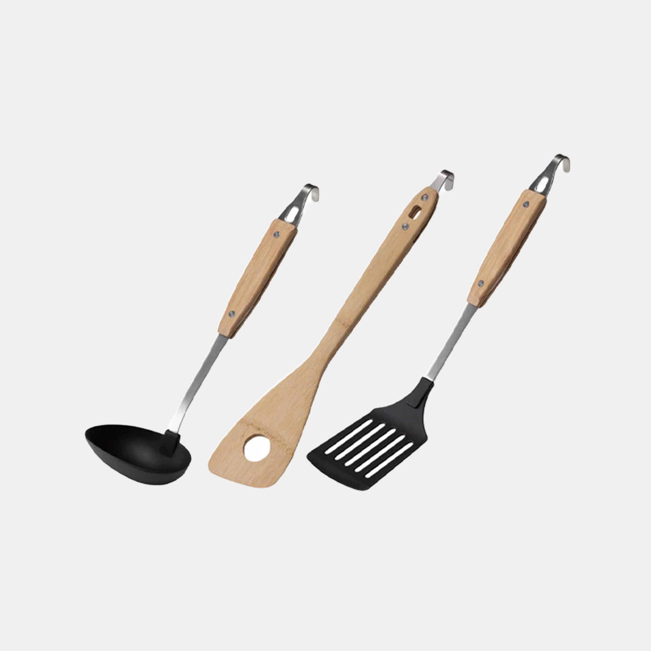 A compact essential for outdoor cooking and minimalist kitchens. The Kitchen Tool Set by Snow Peak includes a spatula, ladle and serving spoon, all crafted for durability and ease of use. Designed to nest together for efficient packing, it’s ideal for camping, travel or streamlined home setups.
