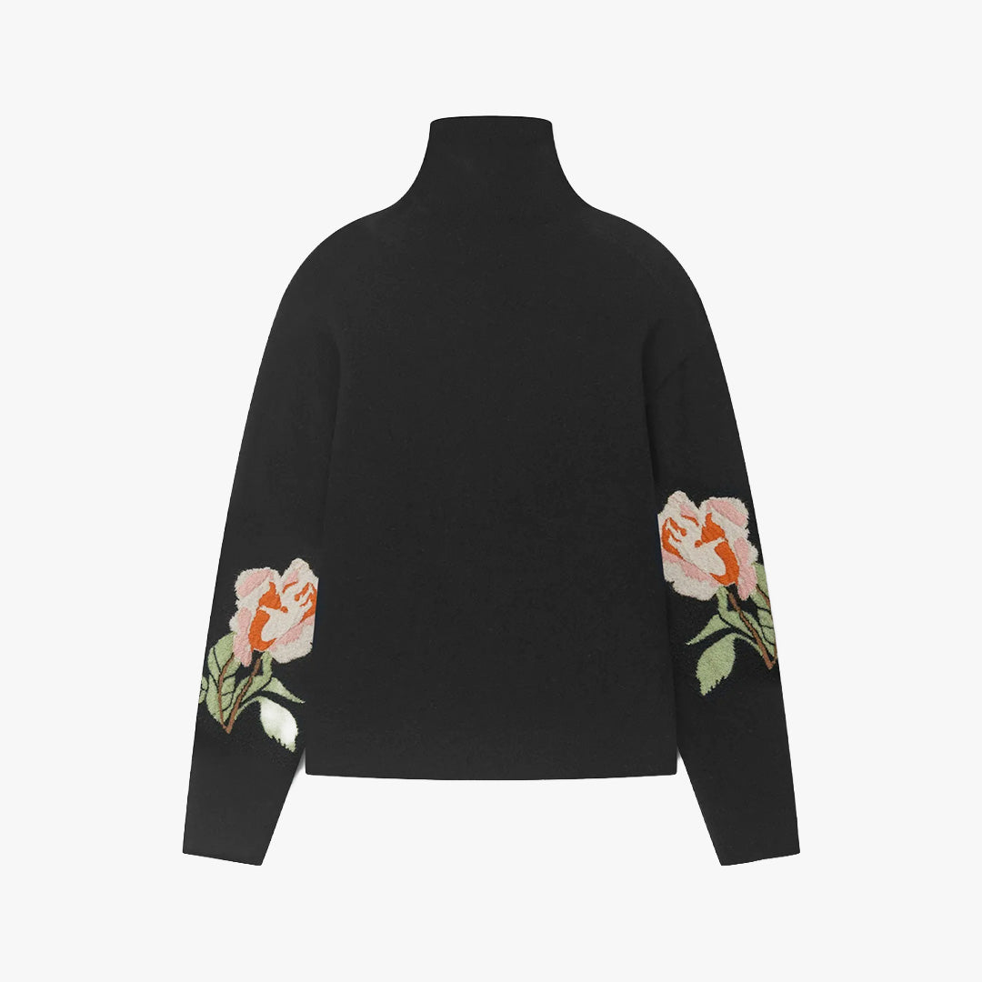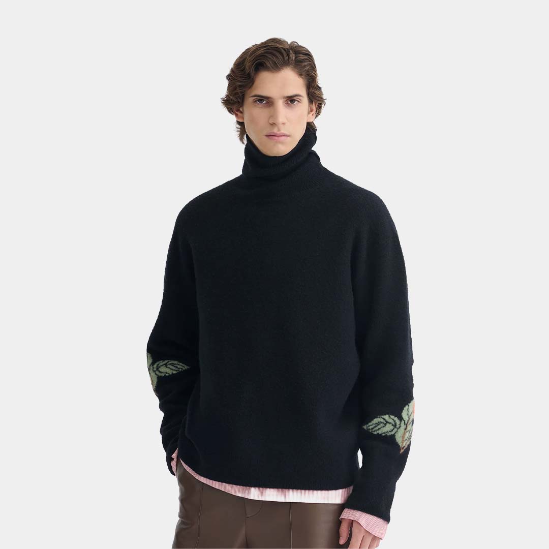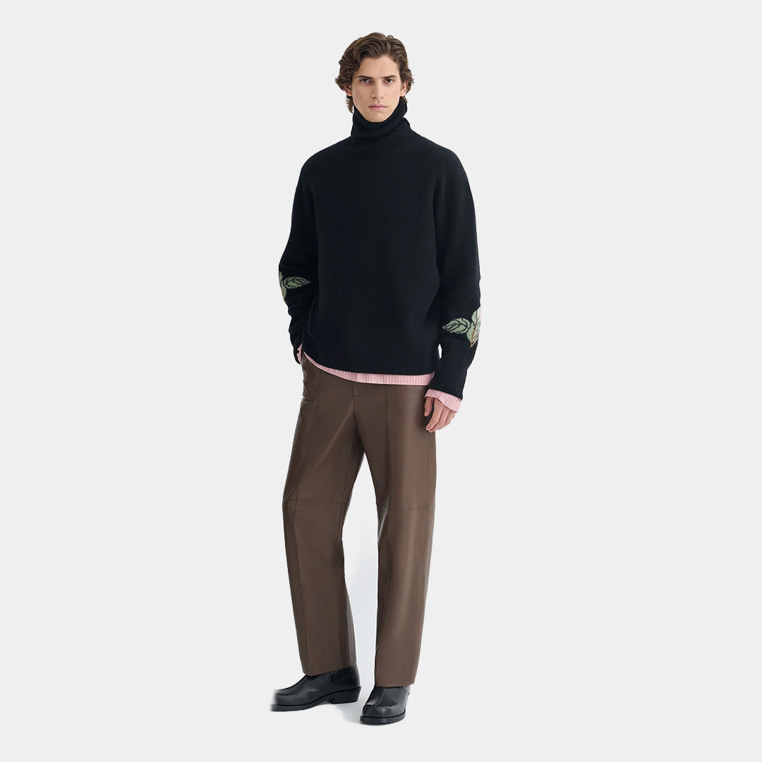 The Frannie Sweater celebrates Nanushka’s love for craftsmanship and cultural storytelling. Knitted from super-soft brushed merino wool, it offers a warm, enveloping feel with an intentionally oversized fit. The standout detail: delicate rose motifs along the sleeves, inspired by traditional Hungarian postage stamps—adding a poetic touch to this modern knit.