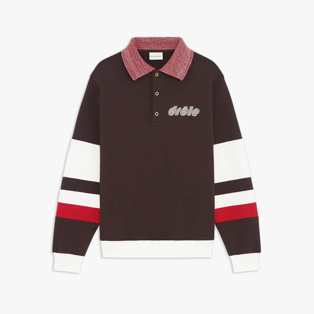 A sporty staple with refined detailing. The Le Polo Sport is crafted from a lightweight cotton blend and features a classic polo collar, short sleeves and a clean button placket. Finished with a subtle “Drôle” embroidered patch on the chest, it brings a polished, athletic feel to everyday looks.