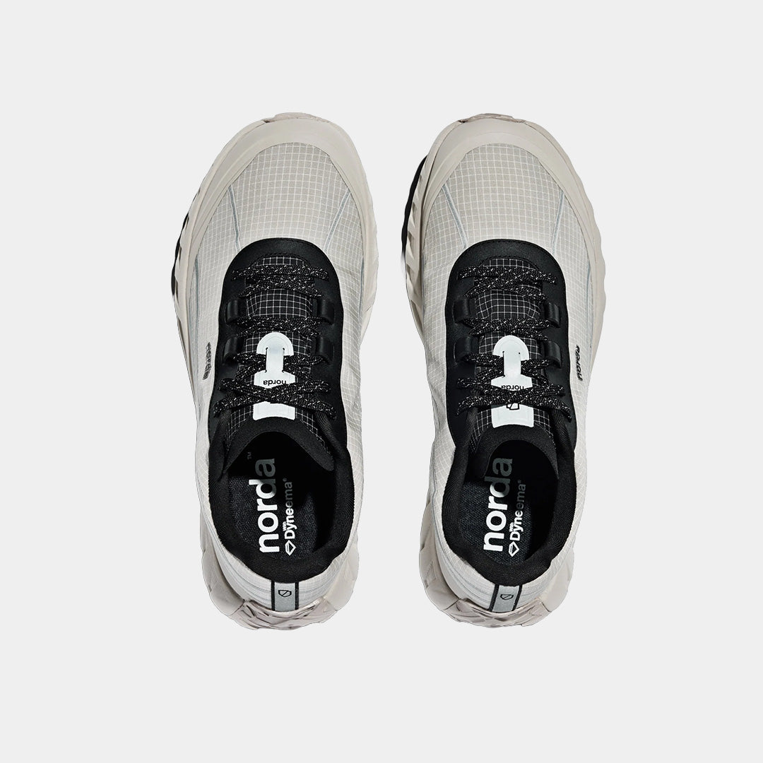 Engineered for performance on trails and beyond, the Norda 002 combines cutting-edge materials with thoughtful design for all-terrain runners. Built with a Dyneema® one-piece woven upper for lightweight strength and abrasion resistance, and a Vibram® Litebase Megagrip sole for superior traction, these shoes are ready for every path ahead. Cushioned with a responsive midsole and fitted with an advanced lace-lock system, they provide stability, comfort and durability for your longest runs.