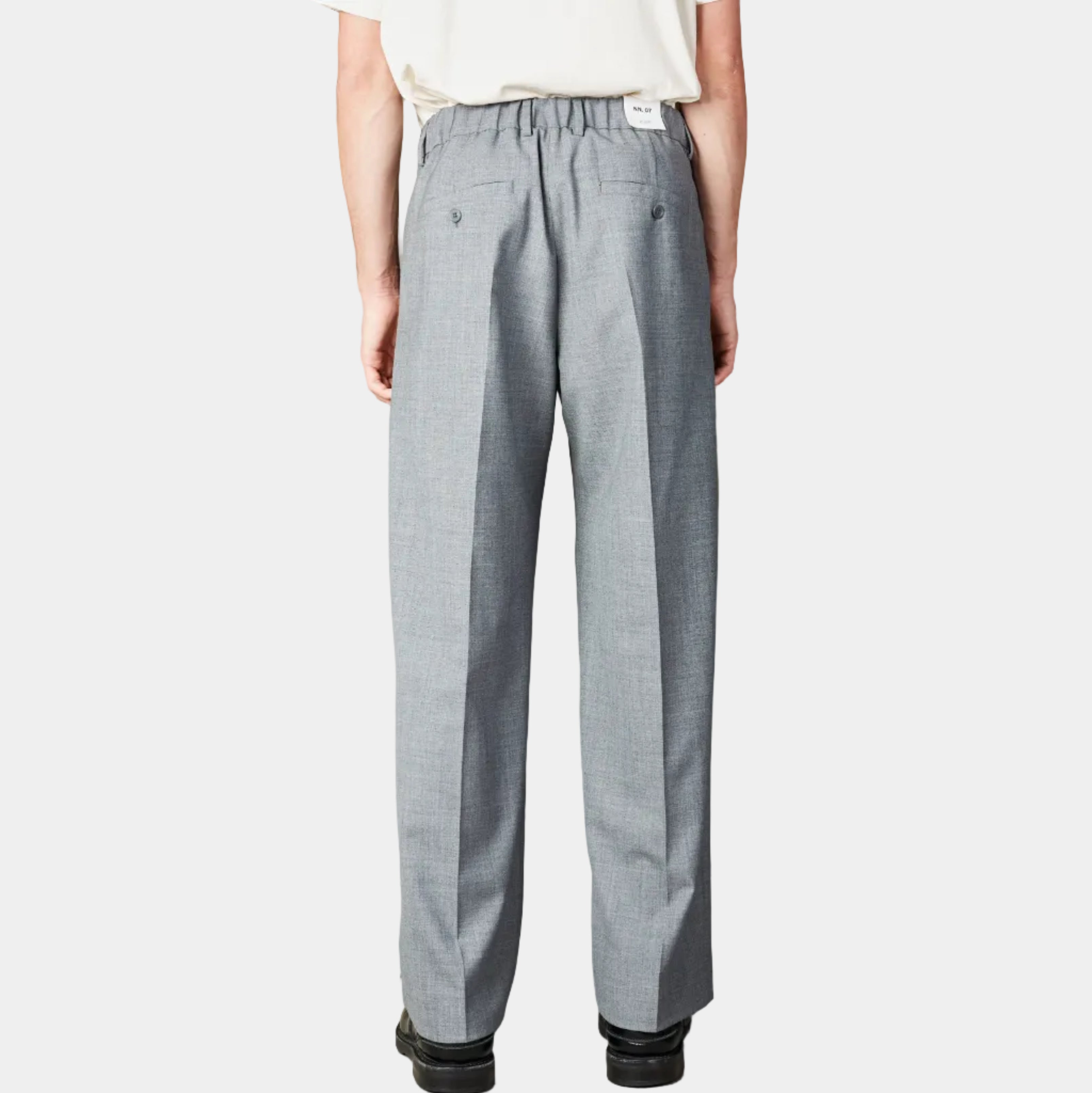 Relaxed-fit pants in a washable wool blend with a soft, drapey handfeel. Featuring a straight leg, front pleats, and a half elasticated waistband at the back for all-day comfort. The anti-crease finish and high elasticity keep them looking sharp through wear and washing. Versatile enough for both dressed and casual styling. Style number 2610000754.